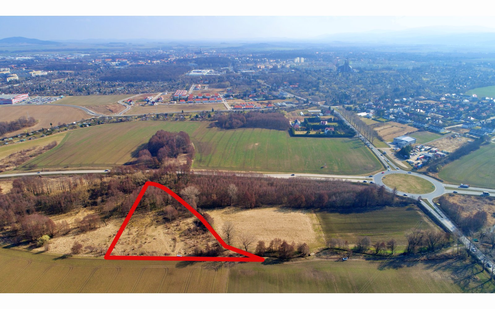 Działka posiada bezpośredni zjazd z obwodnicy, z możliwością skrętu w prawo oraz w lewo, co zapewnia bardzo dobrą dostępność komunikacyjną i dogodny dojazd dla transportu ciężkiego.